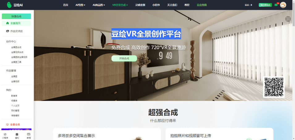 豆绘VR全景是一个用于高效创作720°VR全景漫游的平台,支持全景图合成、全景视频合成、全景图转全景视频。用户可以通过该平台一键生成全景,支持上传2:1比例、六面图、十字图等多种格式,且能在10秒内直接呈现全景效果。平台还提供了热点转场引导功能,用户可以在作品中安插锚点,根据锚点来转换场景、播放视频或跳转链接页面。