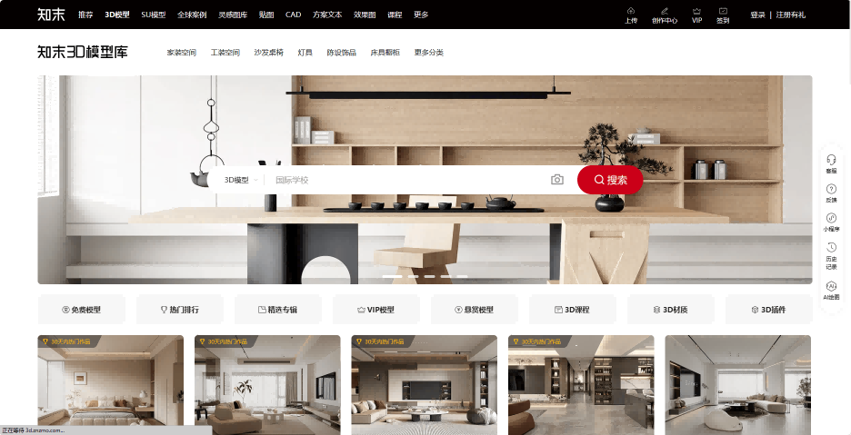 知末网的优势和特色:知末网拥有近500万效果图作品,提供3D模型、SU模型、材质贴图、CAD图纸、软件/插件等素材下载。知末网的素材都是由专业的设计师制作的,可以满足用户在室内设计、建筑设计、景观设计、家居设计等方面的需求。知末网还提供了效果图制作的服务,用户可以在知末网上找到合适的效果图制作公司,或者自己上传自己的设计方案,然后由知末网的专业团队为您制作高品质的效果图。
