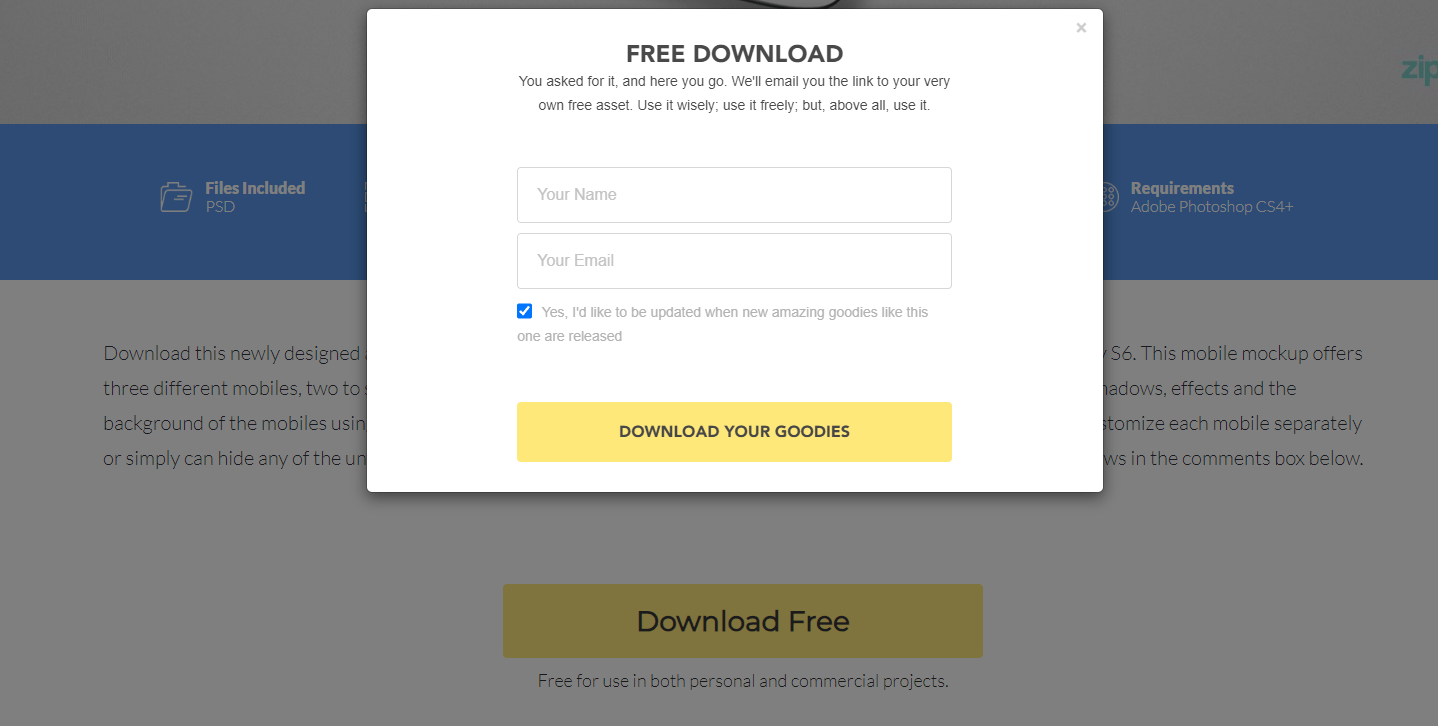 第三步:点击“Download”按钮,输入你的邮箱地址,然后点击“Send me the download link”按钮,你会收到一个包含下载链接的邮件。打开邮件,点击下载链接,你就可以下载资源的压缩文件了。解压文件,打开PSD文件,你就可以使用资源进行设计了。
