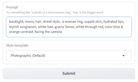 第二步:输入文字提示词,注意加上触发词:img。如:a man img 或a woman img 或girl img。