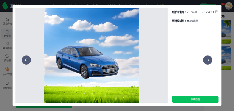 保存和分享:编辑完成后,点击保存或下载按钮,将生成的商品图保存到您的设备。您还可以分享到社交媒体或电商平台,展示您的商品。