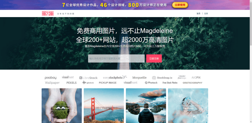 Magdeleine是一个免费高清灵感系图片网,每天分享免费高分辨率照片,该网站也是一个激发你灵感的图库站点,每天手工挑选高分辨率的各种图片,主要类别有自然、城市建筑、动物、视频、技术等。