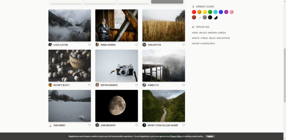 Magdeleine可以根据主题、心情或颜色来搜索图片,所以如果你知道你需要什么,使用起来很方便。图像的选择也是相当惊人的,许多图像是彩色的,但也有大量的黑白摄影。