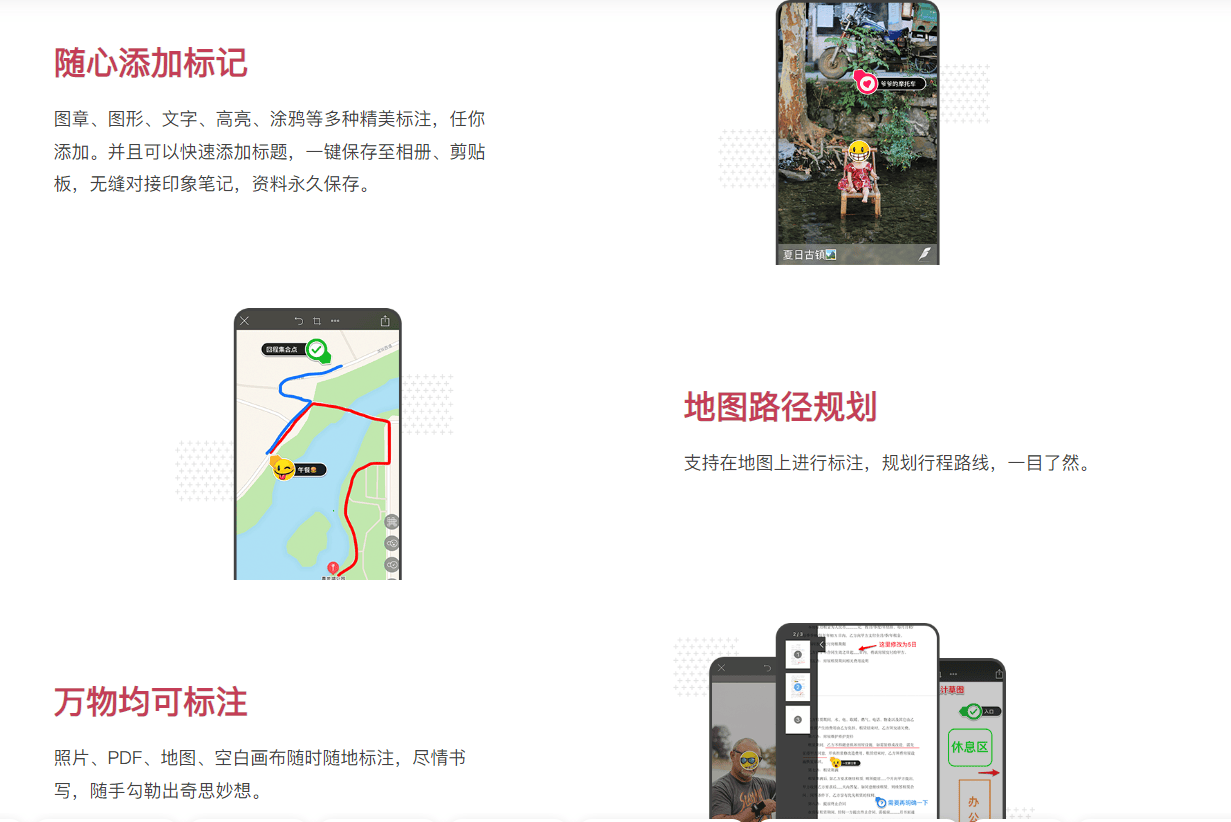 墨笔是最好用的图片标注和手写工具,帮你轻松表情达意,拍照、标注、分享,简单实现。你可以添加箭头、图章、图形等精美标注,或者随手勾勒出奇思妙想。清晰表达想法,快速完成交流,一切从未如此简单。