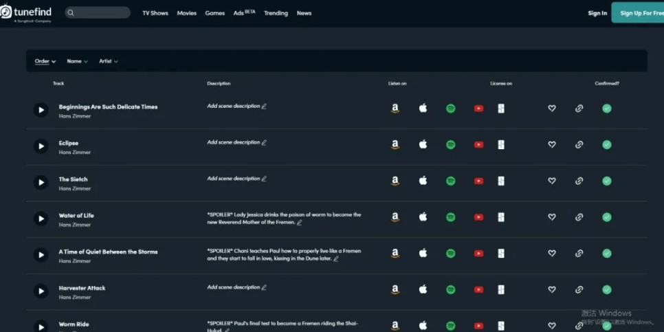 Tunefind是一个BGM背景音乐识别和搜索平台,同时也是全球最全面的电视、电影和视频游戏音乐数据库和在线信息资源。它可以帮助用户识别电影、电视节目和广告中播放的歌曲,并提供相关的歌曲信息和推荐。站内收录了超多影视的精选音乐,不管是热门、冷门,只要你输入影视名,都能轻松找到自己需要的BGM。