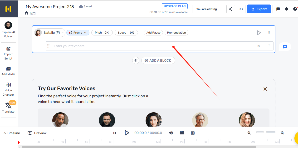 3、输入或上传文本。在项目页面中,你可以直接在文本框中输入你想要转换的文本,或者点击“Upload File”按钮,选择一个包含文本的文件,比如TXT、DOCX、PDF等格式。